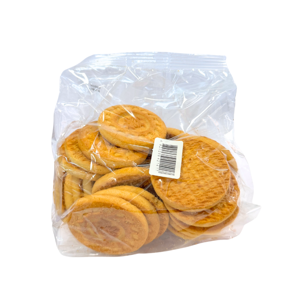Sastāvdaļas: KVIEŠU milti, pūdercukurs, palmu eļļa, invertētā cukura sīrups (cukurs, skābuma regulētājs – citronskābe, mīklas irdinātājs – E500), ūdens, kukurūzas ciete, emulgators – SOJAS lecitīni, mīklas irdinātājs – E500, sāls, aromatviela “SVIESTS”, krāsviela – E160a.