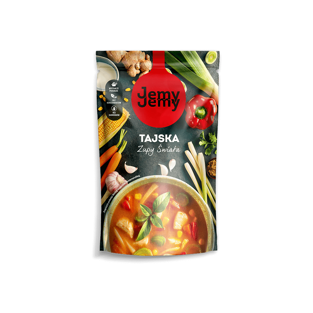 Sastāvdaļas: ūdens, dārzeņi (burkāni 13 %, paprika 3 %, sīpoli, kukurūza 2 %, puravi 2 %, bambusa dzinumi), kokosriekstu piens 8 % (kokosrieksti, ūdens), vistas gaļa 3 %, rapšu eļļa, KVIEŠU milti, tomātu pasta (tomāti, sāls), sāls, citronzāle 1,4 %, modificēta ciete, cukurs, zaļā karija pasta 0,3 % (zaļie čili pipari, citronzāle, ķiploki, sāls, galangals, GARNEĻU pasta (GARNELES, sāls), kafira laima miziņa, garšvielas: sāls, pipari), kafira laima lapas, garšvielas (koriandrs, ingvers, ķiploki), skābuma regulētājs citronskābe, antioksidants: nātrija askorbāts.Sterilizēts produkts.