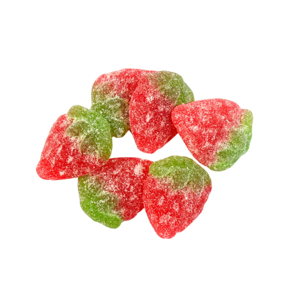 Sastāvdaļas: kukurūzas glikozes sīrups, cukurs, ūdens, modificēta kukurūzas ciete, želatīns, skābuma regulētājs citronskābe, ābolu sula no koncentrāta 1%, skābuma regulētāji: E331, E500; aromatizējošā viela "Zemeņu", skābuma regulētāji: E334, E297, E296; krāsvielas: melno burkānu sulas koncentrāts, hlorofila un hlorofilīna vara kompleksi, kurkumīns.