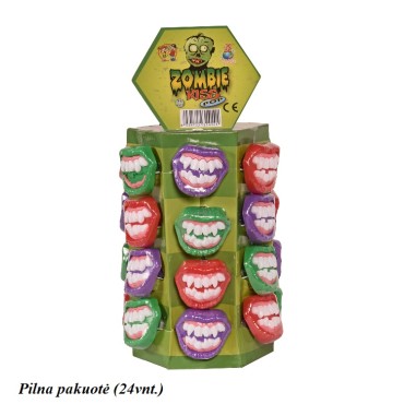 Sastāvdaļas: cukurs, glikozes sīrups, aromāti: “Zemene”, “Mellene”, “Ābols”; krāsvielas: E120, E133, E100.