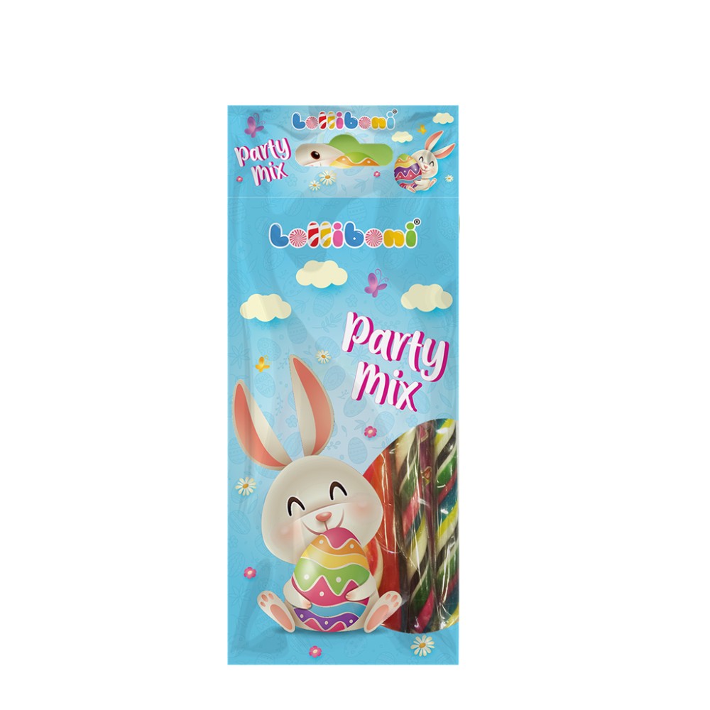 Konfektes ar rotaļlietām un uzlīmēm "Lolliboni party mix Easter" 48g